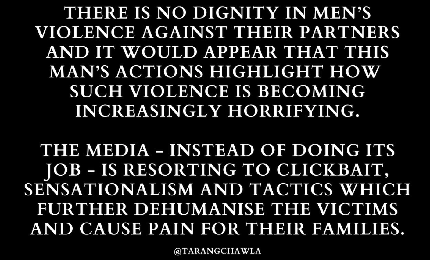 I swiped to read the other slides and was horrified by what I read. You might have seen this story on the nightly news or online. Apart from giving voice to the horrendous violence of this act, Tarang’s wider point is about media reporting.
