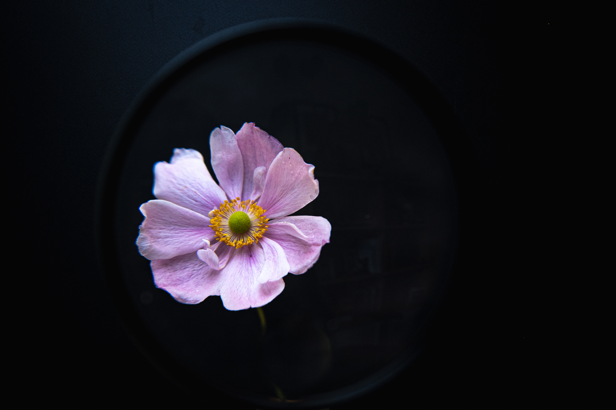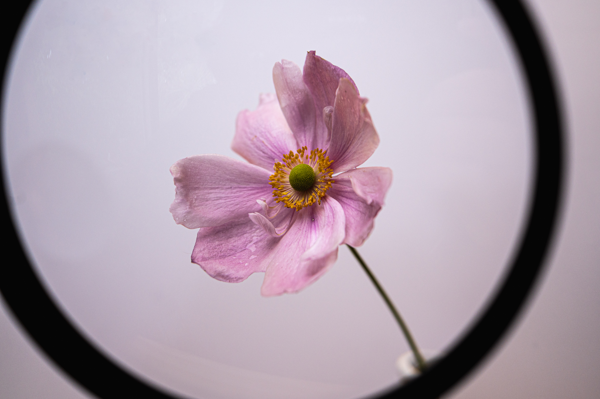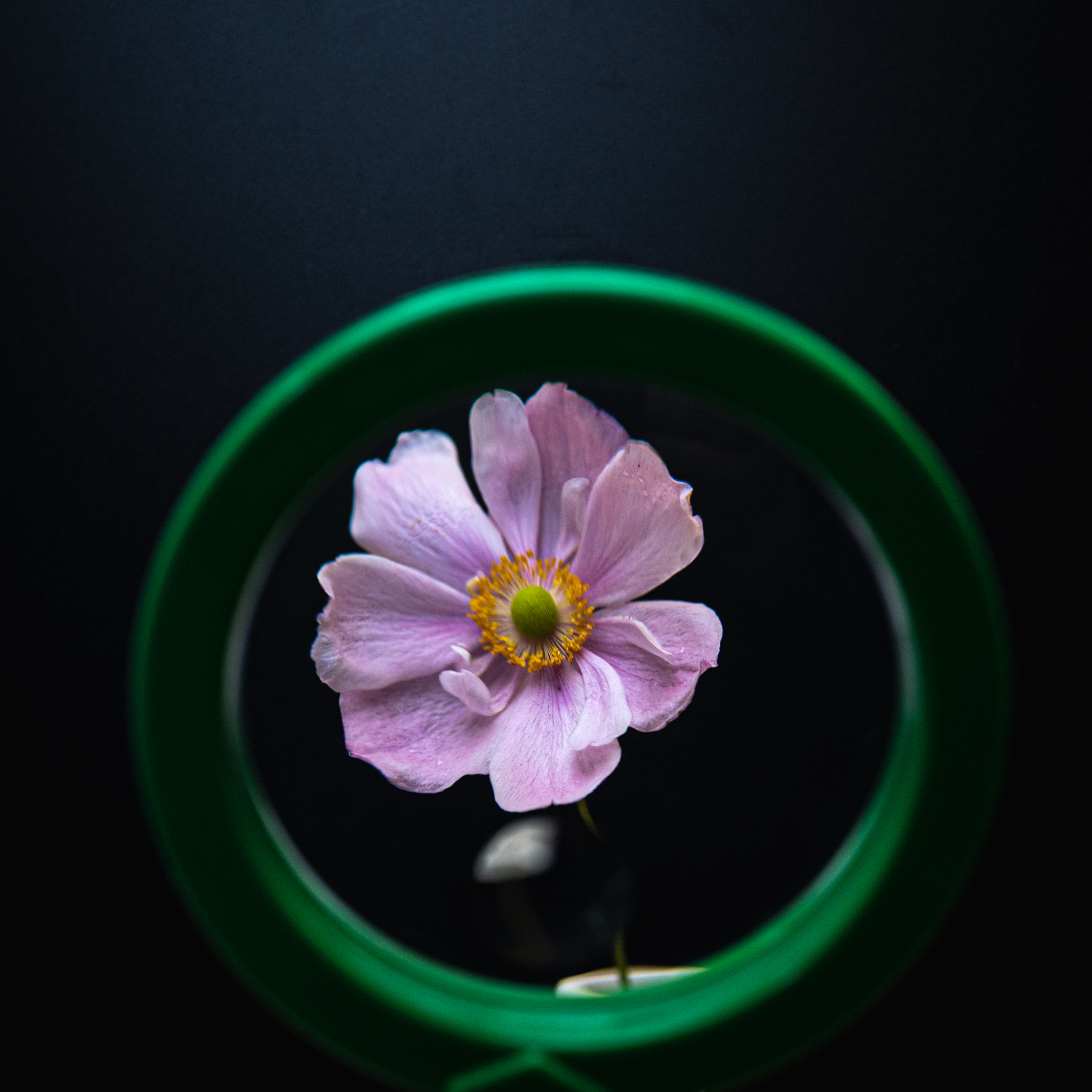 This morning I headed up to the local office supply shop and found a magnifying glass – two actually. A proper one and a big chunky green one designed for kids. I had seen a flower through the kitchen window this morning and thought it would make a good subject.